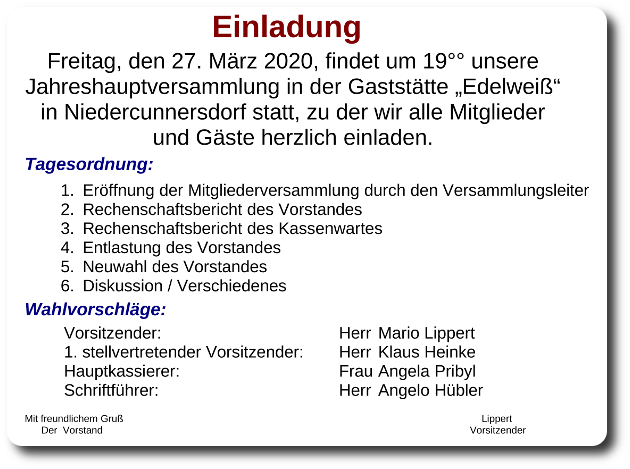 26.02.2020 Einladung zur Jahreshauptversammlung