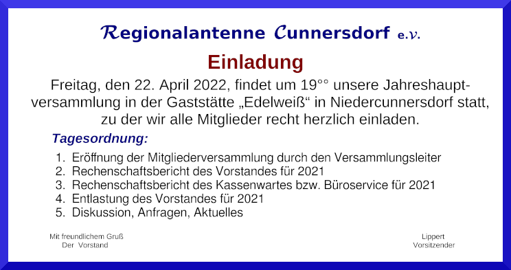 Werte Vereinsmitglieder, denken Sie bitte an die Überweisung des Jahresbeitrages von 48,-.