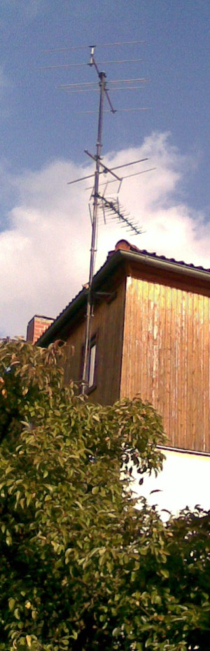Antennenmast mit UKW (Löbau) Antenne und 2 Satellitenantennen.